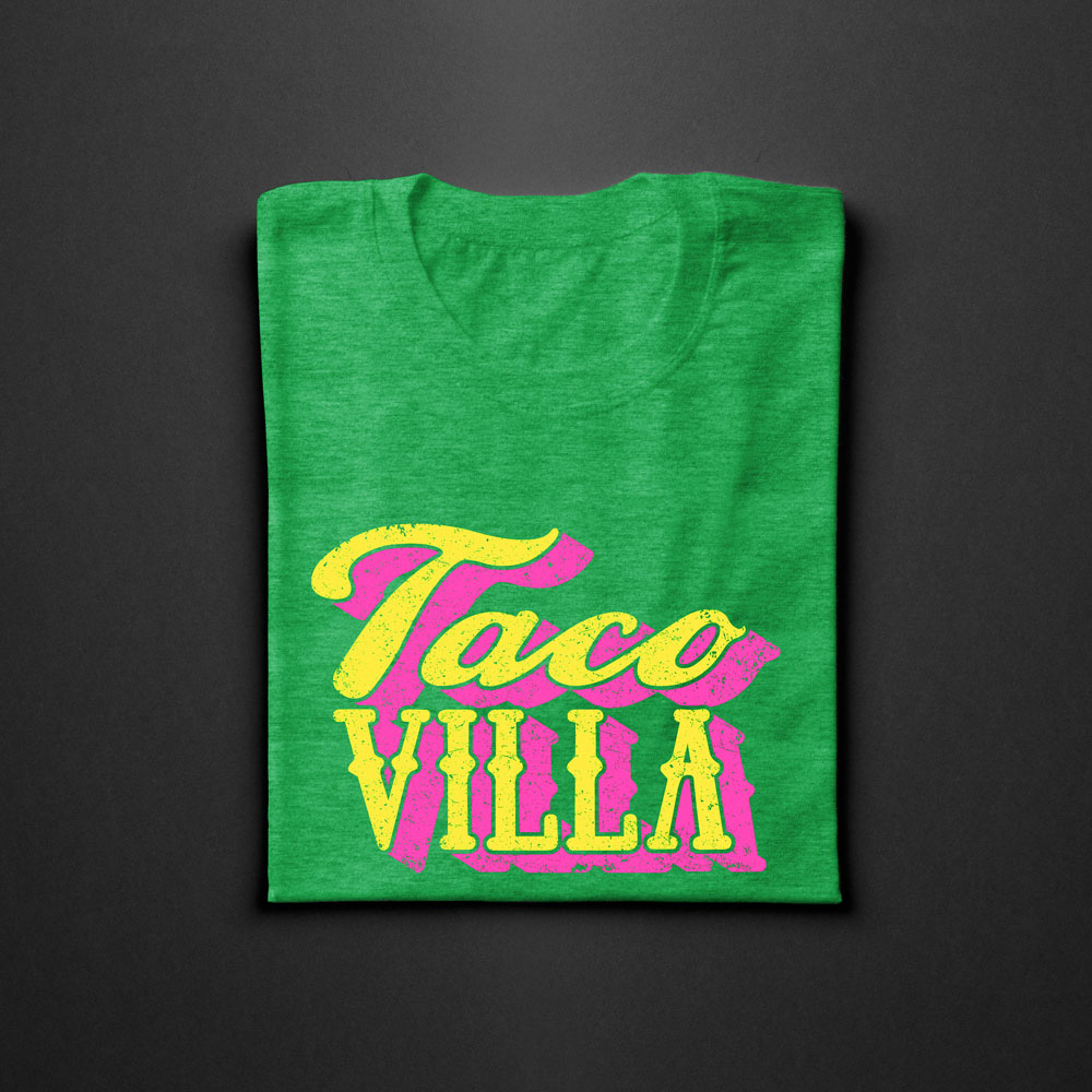 Vibrant Green shirt 60% cotton 40% polyester blend. Neon pink and yellow screen printed logo front and back.
